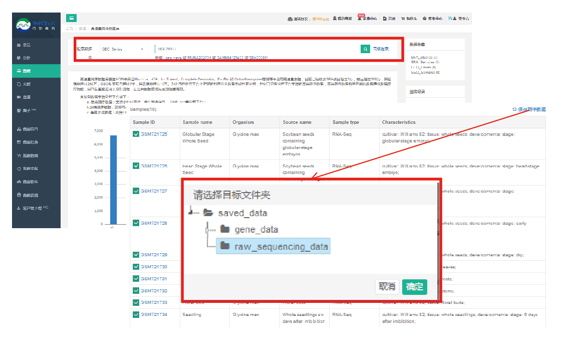 針對(duì)植物基因組學(xué)研究,百邁客云可通過BMKCloud_數(shù)據(jù)庫模塊向用戶提供海量的植物高通量測(cè)序公共數(shù)據(jù),借助公共數(shù)據(jù),可大幅降低研究成本,提升研究層次。數(shù)據(jù)檢索、下載、保存均在圖形化界面下完成,避免了傳統(tǒng)模式中,須在命令行界面下進(jìn)行數(shù)據(jù)下載、格式轉(zhuǎn)換等一系列繁瑣操作的限制,完全適用于國內(nèi)生信0基礎(chǔ)的用戶。